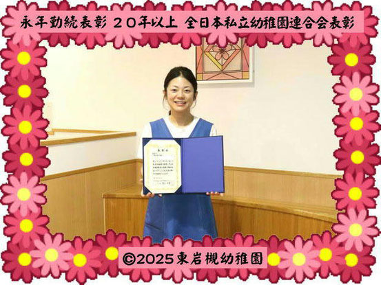 東岩槻幼稚園では、長く勤める先生が多いのが特長です。子どもたちの成長を温かく見守りながら、自らも学び続ける環境が整っています。勤続表彰を受けた先生たちは、園の大切な支えとなり、安心感のある保育を実現しています。これからも、笑顔あふれる幼稚園づくりを大切にしていきます。